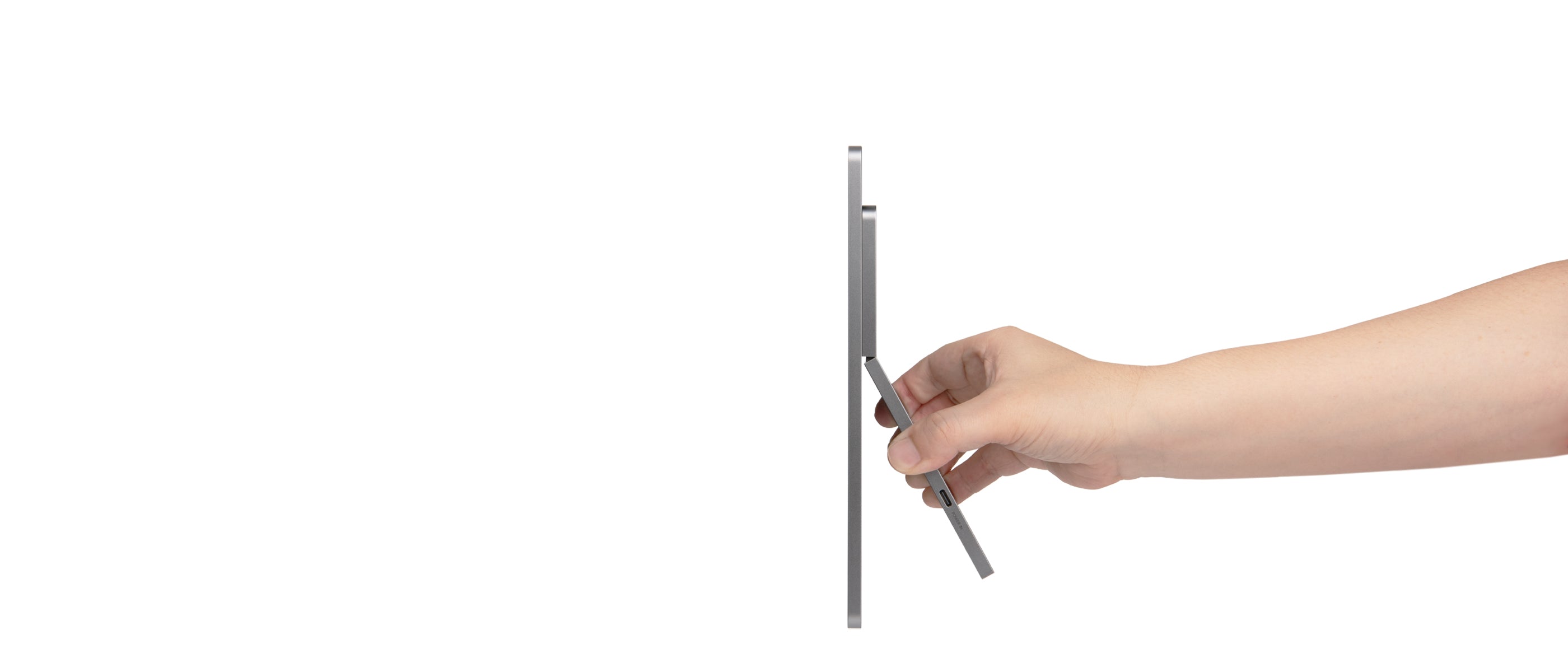 Take your FlipAction Go 14'' to the next level with a base stand. Designed with functionality and seamless integration in mind, this slim, foldable base stand magnetically attaches to the back of your FlipAction Go 14”, so you can easily pack it and GO!